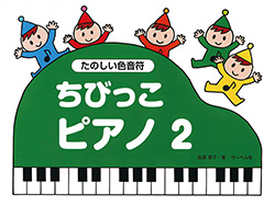 この二巻においては、新しくファとソを習います。一巻の1本線から2本線へと進みますから、子供たちにとっては少し難しく感じるかもしれませんが、色音符の助けによって少しずつ慣れていきます。リズムは、一巻と同じです。また、ファとソは動きにくい指を使うことから、子供たちにとっては一巻の時よりペースがゆっくりになるかもしれませんが、十分な量の課題を用意していますので、一曲一曲にじっくりと取り組んでいってください。使い方は、一巻と同様に、左ページで歌とリズムを練習し、右ページをピアノでひきます。また、本書の色音符と並行して普通の音符を学ぶのが望ましいと思われますので、「ちびっこワーク・ブック」をぜひ併用してください。楽しく音符を覚えながら、本書の内容を一層有意義にすることができます。