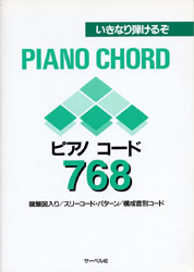 ピアノコード768 タイトル いきなり弾けるぞ ピアノコード768 ☆鍵盤図入り ☆スリーコード・パターン ☆構成音別コード 商品番号 21281 定価 1,320円(本体1,200円+税) 判型 B5 ページ数 112 発行日 ISBNコード 978----2 JANコード 書籍JAN上段 書籍JAN下段 便利で使いやすいコードブック。 ・ひとめでわかる鍵盤図入り ・スリーコード パターン付き ・構成音別コード付き